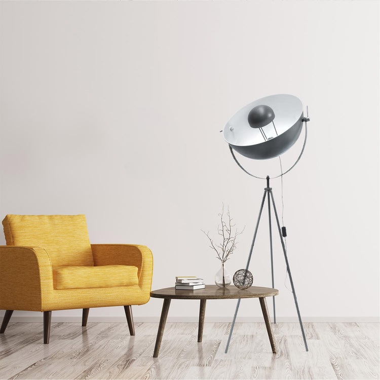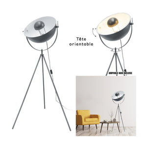 Dê um toque teatral à sua sala com este candeeiro de pé de dois tons inspirado na iluminação de cinema. O seu tripé e a sua cabeça regulável permitem moldá-lo de acordo com os seus desejos! Detalhe: lâmpada E27 de 40 W máx. Não incluída. Dimensões: Altura 145 cm. Diâmetro no solo: 65 cm. Diâmetro do abat-jour: 40 cm.