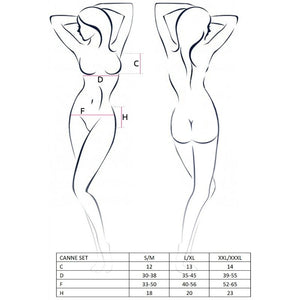 O conjunto da coleção Canne é um fabuloso conjunto de lingerie com um design espetacularmente sexy com o qual você se tornará uma bomba de sedução, fabricado pela prestigiada marca de lingerie Passion