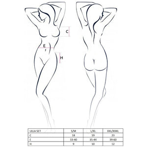 O conjunto da coleção Ulla é um fabuloso conjunto de lingerie com um design espetacularmente sexy com o qual você se tornará uma bomba de sedução, fabricado pela prestigiada marca de lingerie Passion