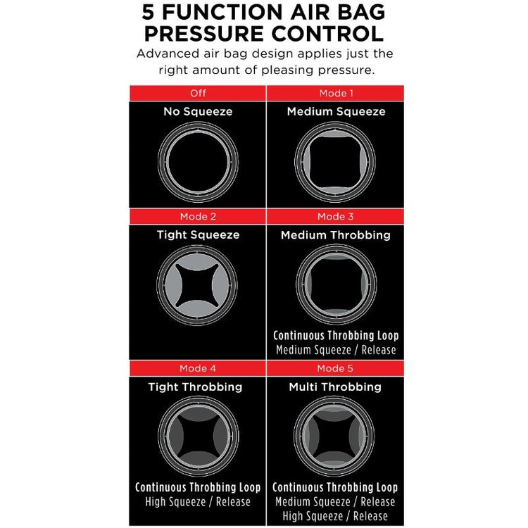 - Controle de pressão do air bag de 5 funções - O design avançado do air bag aplica a quantidade certa de pressão agradável. Pressione para ativar e segure por 3 segundos para liberar.