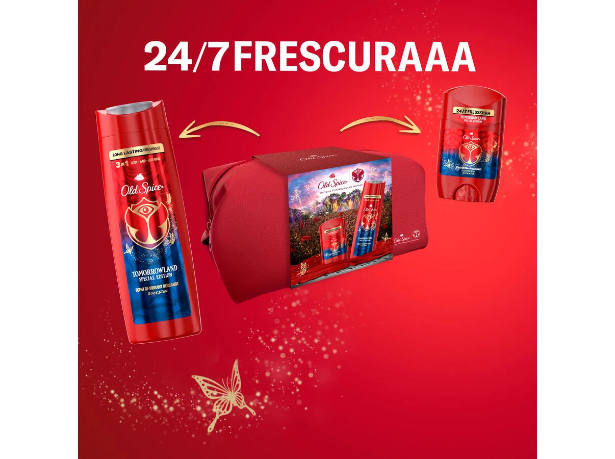 Procuras o presente perfeito para ele? Os conjuntos de oferta Old Spice para homem são a prenda ideal para impressionar a verdadeira lenda da frescura festiva. Porque é que perguntas? Porque não há que enganar com as fragrâncias de qualidade Old Spice. O Conjunto de Oferta Old Spice Tomorrowland Edição Especial contém o desodorizante em stick Tomorrowland e o gel de banho para homem, embalados numa bolsa de higiene pessoal exclusiva Old Spice que pode ser reutilizada para transportar artigos de higiene pe ssoal. Experimenta a fragrância de qualidade de Tomorrowland Edição Especial: A fragrância de citrinos de bergamota e maçã combinada com notas de madeira. Não há que enganar com esta combinação! Como é que este conjunto de oferta Old Spice ainda não está no teu carrinho?