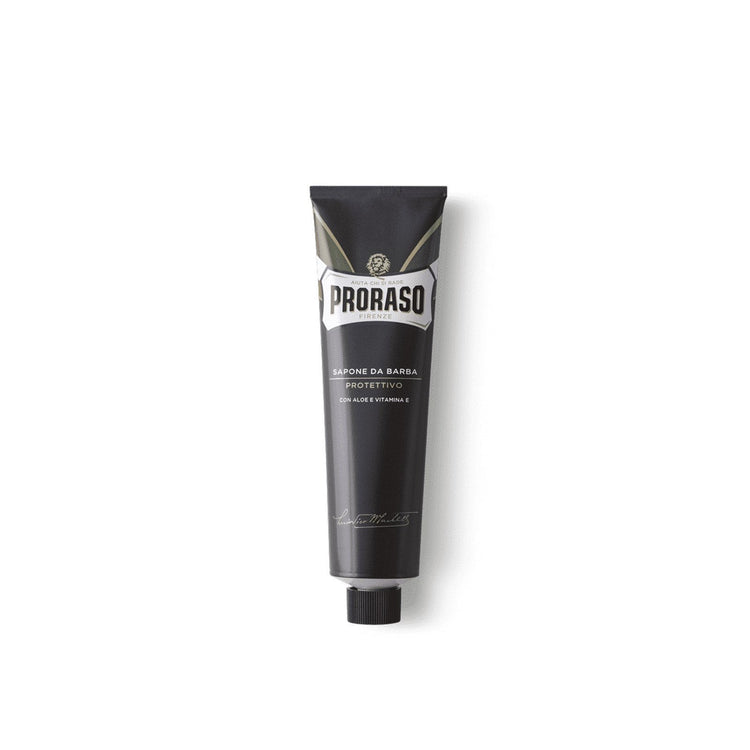 Proraso Shaving Cream Protective 150ml é um sabonete de barbear que vem num prático formato de tubo, concebido para criar uma espuma fina, densa e cremosa para um barbear preciso e confortável. Este sabonete de barbear é produzido através de um processo meticuloso que começa com a saponificação a quente. Depois, a reação continua durante a noite, garantindo uma mistura e integração completas de todos os componentes, tais como óleos, ácidos gordos e álcalis. De seguida, a mistura é submetida a uma fase de arrefecimento lento com mistura contínua. Este processo ajuda a eliminar os álcalis residuais que poderiam causar irritação. Finalmente, a fórmula é armazenada em recipientes de aço, onde, após três a quatro dias, o sabão de barbear atinge a estrutura e a estabilidade corretas, garantindo uma aplicação suave e um desempenho ótimo durante o barbear.